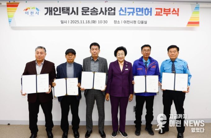 이런뉴스(e-runnews) 김삼성 기자 | 이천시는 지난 18일 시청 다올실에서 개인택시운송사업 신규 면허증 교부식을 개최하고, 심사를 통해 최종 선정된 5명의 대상자에게 면허증을 전달했다고 밝혔다.