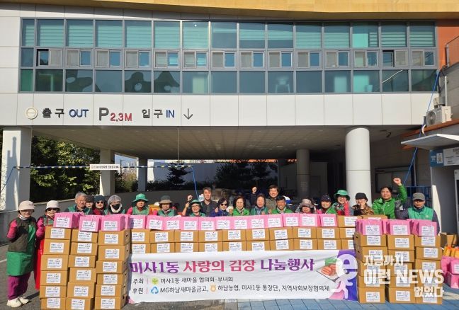 이런뉴스(e-runnews) 김삼성 기자 | 하남시 미사1동 새마을협의회(회장 김성호)와 부녀회(회장 유정자)는 2025년 11월 19일, 본격적인 겨울을 맞아 관내 소외계층 100가구에 전달할 ‘사랑의 김장김치 나눔 행사’를 성황리에 진행했다.