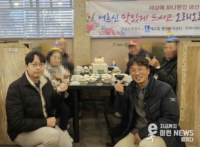 이날 생신상은 이교수한정식(팔달구 인계동 소재)과 매교동 행정복지센터 및 지역사회보장협의체 간 업무협약의 일환으로 이교수한정식의 따뜻한 후원으로 마련됐다. 여기에 매교동 주민자치회가 정성껏 준비한 생일 케이크가 더해져 더욱 뜻깊은 자리가 됐다.