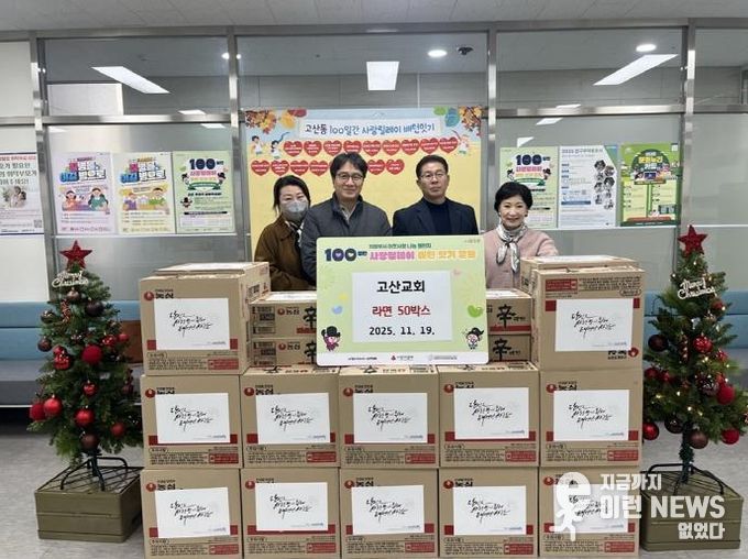 이봉득 동장은 “매년 지역사회에 온정을 전하기 위해 힘써주시는 조성조 목사님과 고산교회 성도분들께 감사드린다”며 “기탁해 주신 라면과 함께 고산교회의 따뜻한 마음을 이웃분들께 잘 전할 수 있도록 노력하겠다”고 말했다.
