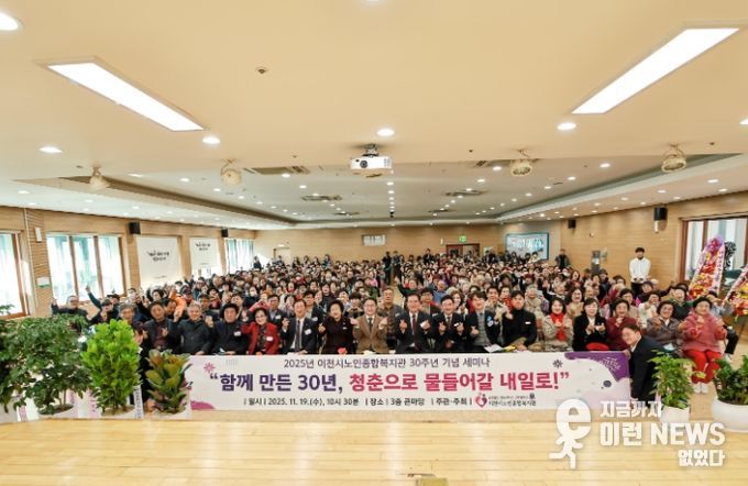 이런뉴스(e-runnews) 김삼성 기자 | 이천시는 11월 19일 이천시노인종합복지관 개관 30주년을 맞아 기념식 및 세미나를 개최했다고 밝혔다. 이번 행사는 지난 30년의 성과를 돌아보고, 초고령사회에 대응한 향후 노인복지의 발전 방향을 모색하기 위해 마련됐다.