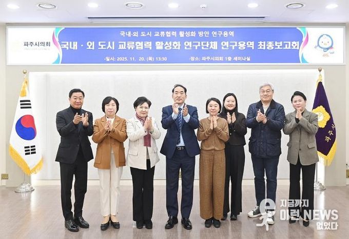 이런뉴스(e-runnews) 김삼성 기자 | 파주시의회 의원연구단체인‘국내·외 도시 교류협력 활성화 연구단체’는 20일, 파주시의회 1층 세미나실에서‘국내·외 도시 교류협력 활성화 방안에 대한 연구용역 최종보고회’를 개최했다고 밝혔다.