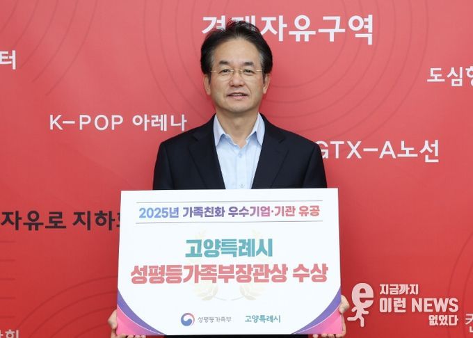 이런뉴스(e-runnews) 김삼성 기자 | 고양특례시는 지난 20일 성평등가족부가 주최한 ‘2025년 가족친화 우수기관기업 정부포상 수여식’에서 직원의 일·가정 양립을 적극 지원한 공로를 인정받아 성평등가족부장관상을 수상했다고 밝혔다.