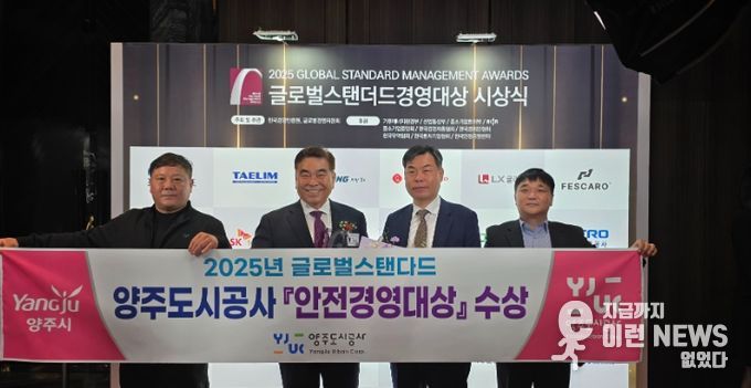 이런뉴스(e-runnews) 김삼성 기자 | 양주도시공사는 국내외 산업계와 공공기관이 참여하는 ‘2025 글로벌스탠더드 어워드’에서 '안전경영대상'을 수상했다고 밝혔다.