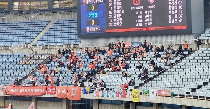 이런뉴스(e-runnews) 김삼성 기자 | 프로축구 K리그2 제39라운드 화성과 부천의 시즌 마지막 경기가 23일 부천의 홈 부천종합운동장에서 명 관중의 응원 속에 펼쳐졌다.
