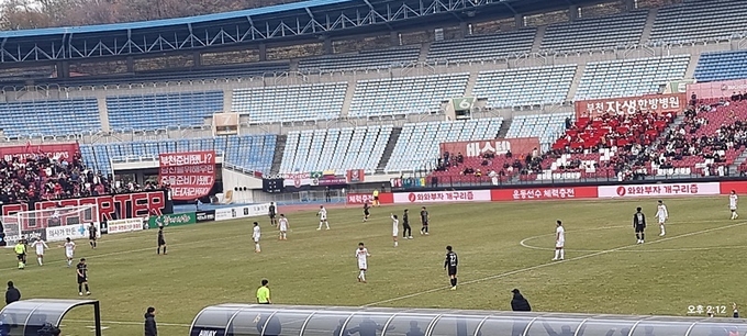 후반 들어 화성의 공격은 더욱 거세졌고 좀 더 세밀한 패스에 이은 결정적 기회를 만들려는 플레이가 돋보였다. 그러나 한 명이 빠진 부천의 끈기 있는 수비도 만만치 않았고 첫 경기 첫 출전의 김현엽 키퍼의 선방 등은 부천 팬들의 환호를 이끌었다.