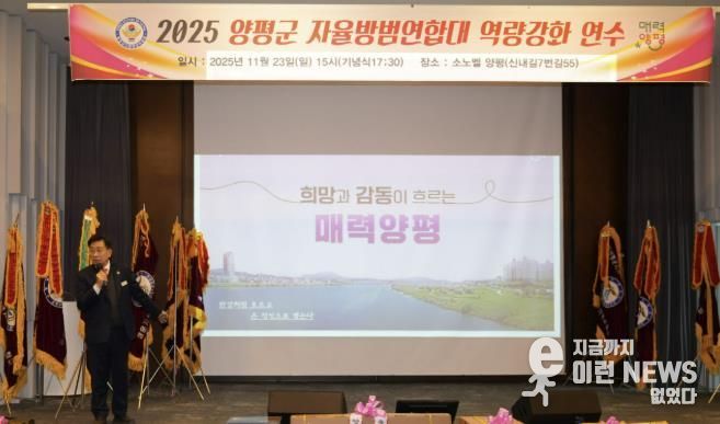 이런뉴스(e-runnews) 김삼성 기자 | 양평군자율방범연합대는 지난 23일 개군면 소노벨에서 자율방범대원 300여 명이 참석한 가운데 자원봉사 및 직무교육 등 역량 강화 연수를 실시했다.