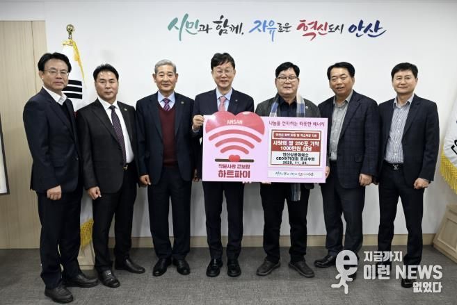 이런뉴스(e-runnews) 김삼성 기자 | 안산시는 지난 24일 안산상공회의소 CEO 아카데미 총원우회로부터 쌀 250포(포대당 10kg, 1,000만 원)를 기탁받았다고 25일 밝혔다.