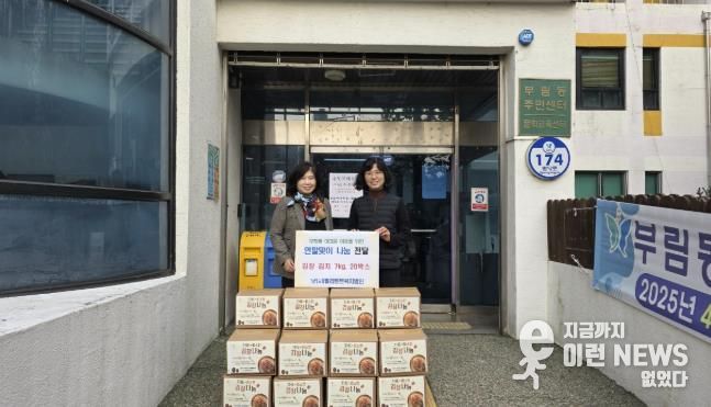 부림동에서는 ‘부림동 다함께돌봄센터’ 위탁운영 기관인 (사)필라멘트복지법인이 지역 취약계층을 위해 김장김치 7kg 20박스(110만 원 상당)를 기부했다. 기부된 김치는 봉사자들이 손수 담근 것으로, 부림동주민센터는 관내 저소득층 가구에 전달할 예정이다.