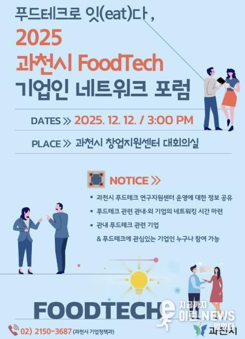 이날 행사에는 과천시 관내·외 푸드테크 관련 기업인 및 식품·외식 분야 등 관련 산업 종사자 누구나 참여할 수 있으며, 자세한 사항은 기업정책과로 문의하면 된다.