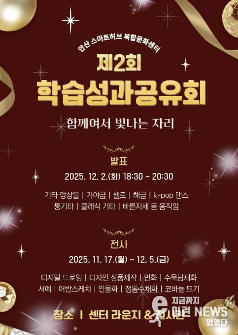 이선희 문화체육관광국장은 “학습성과공유회를 통해 한 해 동안 이룬 성취를 되돌아보는 계기가 되기를 바라며, 앞으로도 수강생들이 더욱 성장할 수 있도록 지원해 나가겠다”고 말했다.