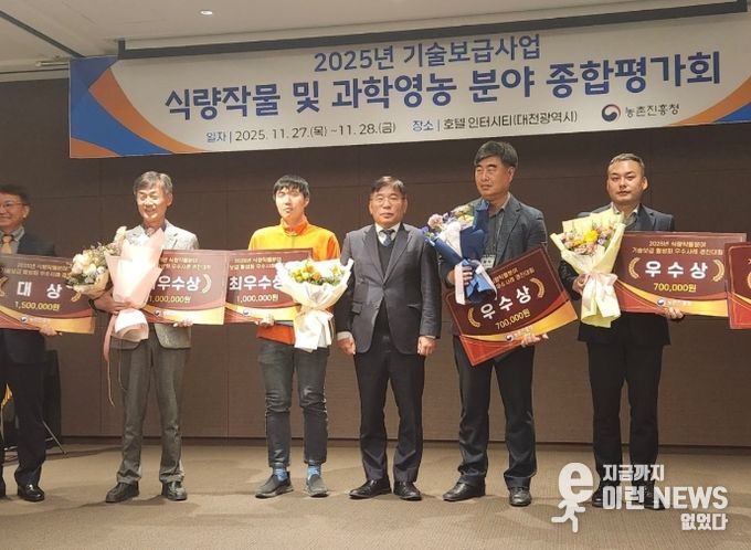 이런뉴스(e-runnews) 김삼성 기자 | 김포시농업기술센터는 지난 11월 27일, 대전광역시 유성구 호텔 인터시티에서 열린 농촌진흥청의 ‘2025년 식량작물 및 과학영농분야 기술보급사업 종합평가회’에서 식량작물 기술보급 활성화 우수사례 경진 최우수 기관상을 수상했다.
