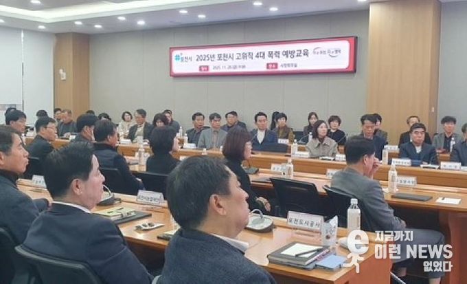 이런뉴스(e-runnews) 김삼성 기자 | 포천시는 28일 시청 시정회의실에서 5급 이상 고위직 공무원 70여 명을 대상으로 성희롱·성폭력·가정폭력·성매매 등 4대 폭력 통합 예방교육을 실시했다.