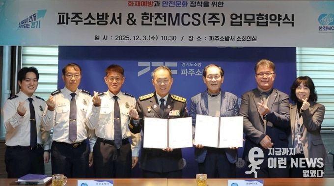 이런뉴스(e-runnews) 김삼성 기자 | 파주소방서는 3일 오전 10시 30분 파주소방서 2층 소회의실에서 한전MCS(주)와 ‘화재안전강화 업무협약’을 체결했다고 밝혔다.