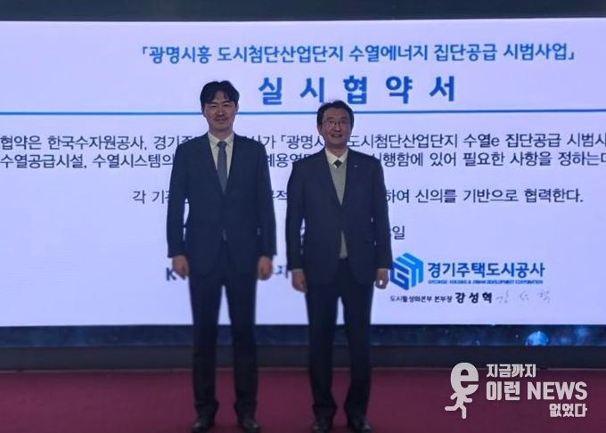 이런뉴스(e-runnews) 김삼성 기자 | 경기주택도시공사(GH)는 3일 GH 수원 본사 9층 역량개발센터에서 한국수자원공사(K-water)와 함께 ‘광명시흥 도시첨단산업단지 수열에너지 집단공급 시범사업’ 추진을 위한 실시협약을 체결했다고 밝혔다. 이 자리에는 양 기관 관계자 약 30명이 참석했다.