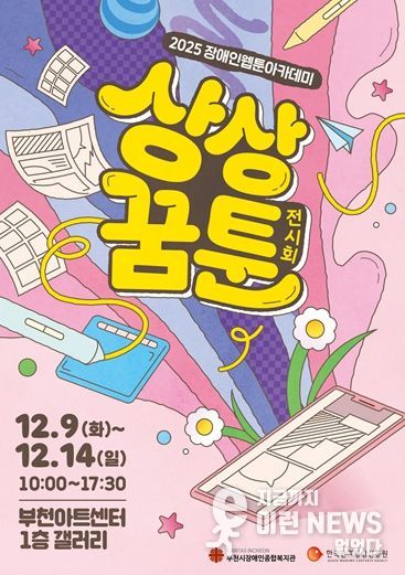 이런뉴스(e-runnews) 김삼성 기자 | 부천시장애인종합복지관은 한국만화영상진흥원이 지원하는 장애인웹툰아카데미 ‘상상꿈툰’ '우리가 바라는 세상' 전시회를 오는 12월 9일부터 14일까지 부천아트센터 1층 갤러리에서 개최한다.
