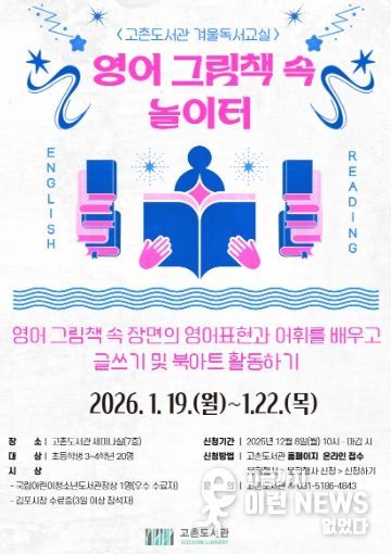 이런뉴스(e-runnews) 김삼성 기자 | 김포시 고촌도서관은 오는 2026년 1월 19일부터 1월 22일까지 초등학생 3~4학년을 대상으로 겨울독서교실 '영어 그림책 속 놀이터'를 운영한다.