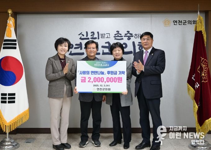 이런뉴스(e-runnews) 김삼성 기자 | 연천군의회는 2025년 12월 3일, 겨울철 난방비 부담이 큰 취약계층을 지원하기 위해 전 의원이 뜻을 모아 연천연탄은행에 후원금 200만원을 전달했다.
