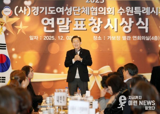 이런뉴스(e-runnews) 김삼성 기자 | 이재준 수원특례시장이 지난 2일 인계동에서 열린 경기도여성단체협의회 수원시지회 송년 행사에 참석해 “양성평등 문화 확산을 위해 노력해 주신 경기도여성단체협의회 수원시지회에 감사드린다”고 말했다.