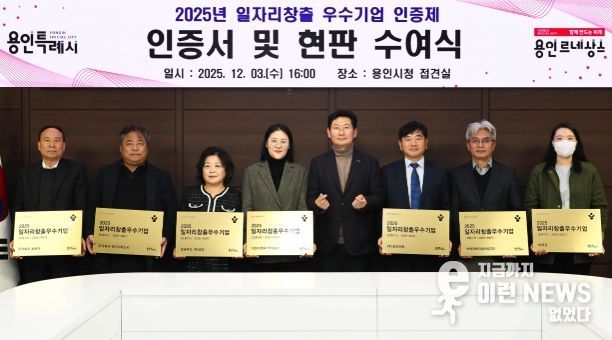 이런뉴스(e-runnews) 김삼성 기자 | 용인특례시는 3일 본관 4층 전겹실에서 일자리 창출에 힘쓴 지역 우수기업 8곳에 인증서와 현판을 수여했다.