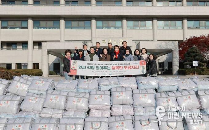 이런뉴스(e-runnews) 김삼성 기자 | 군포시와 군포시지역사회보장협의체는 사회복지공동모금회와 함께 ‘2025년 기후변화(혹한기) 취약가정 계절별 환경개선 지원사업’을 추진하여 본격적인 추위가 시작되기 전에 취약한 가구의 겨울나기를 돕기 위해 저소득 취약가구 250가구에게 겨울 이불세트를 전달 했다.