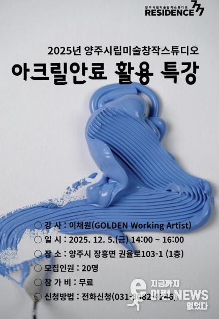 이런뉴스(e-runnews) 김삼성 기자 | 양주시립미술관이 오는 12월 5일 오후 2시부터 4시까지 지역 예술인의 전문성 향상과 창작 기반 강화를 위해 ‘아크릴 안료 활용 특강’을 개최한다.