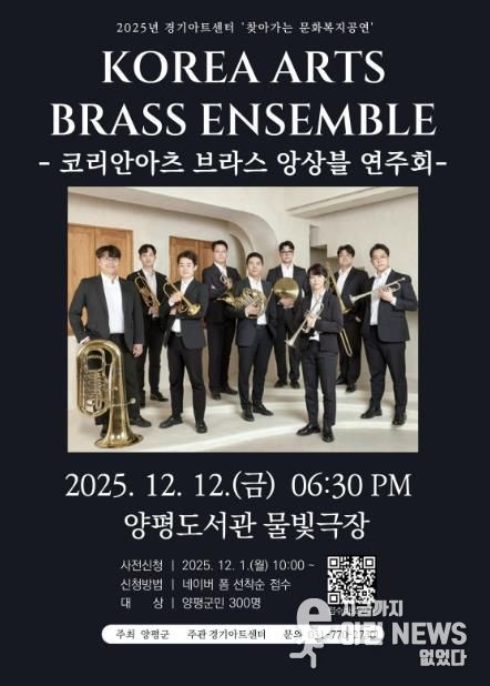 이런뉴스(e-runnews) 김삼성 기자 | 양평군은 지역 주민에게 품격 있는 문화 향유 기회를 제공하고자 오는 12월 12일 양평도서관 물빛극장에서 ‘연말 맞이 찾아가는 문화복지 공연’을 개최한다고 밝혔다.