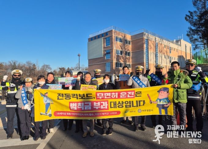 이런뉴스(e-runnews) 김삼성 기자 | 여주시 녹색어머니회는 지난 11월 14일과 24일 두차례에 걸친 개인형 이동장치(PM)의 안전 이용 캠페인에 이어 세번째 캠페인을 12.4일 아침 8시부터 9시까지 매서운 날씨에도 불구하고 여주중학교 정문 앞에서 강행했다. 이번 캠페인에는 녹색어머니회를 비롯해 여주경찰서, 여주중학교 교직원 등 총 20여명의 관계자들 이 참여해 여주중학교 학생들에게 목도리와 장갑 등의 홍보물품을 나눠주며 현수막과 피켓을 활용해 안전한 PM 사용을 당부했다.