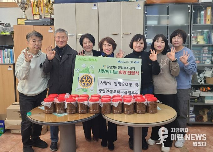이런뉴스(e-runnews) 김삼성 기자 | 광명시 광명3동 지역사회보장협의체는 4일 광명엔젤로타리클럽으로부터 직접 담근 된장을 기탁받아 관내 어려운 이웃에게 전달했다.