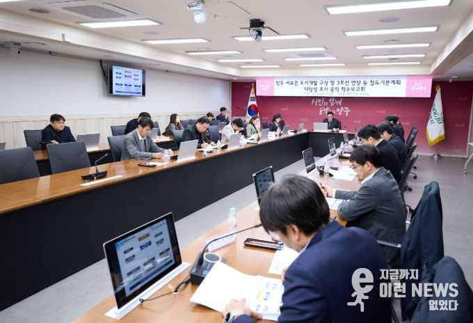 이런뉴스(e-runnews) 김삼성 기자 | 양주시가 지난 5일 시청 상황실에서 '양주 서부권 도시개발 구상 및 3호선 연장 등 철도기본계획 타당성조사 용역 착수보고회'를 개최했다.