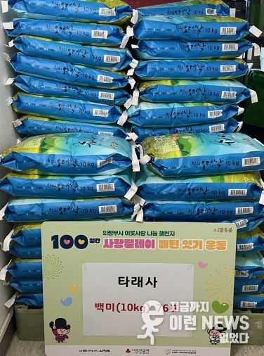 이런뉴스(e-runnews) 김삼성 기자 | 의정부시 가능동주민센터는 12월 4일 한국불교태고종 타래사가 ‘100일간 사랑릴레이 배턴 잇기’에 동참해 백미 76포(10kg 단위)를 기탁했다고 밝혔다.
