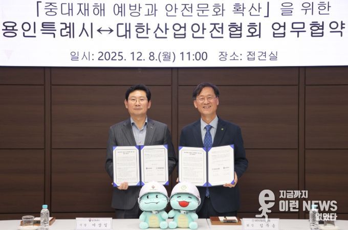 이런뉴스(e-runnews) 김삼성 기자 | 용인특례시는 8일 시청 4층 접견실에서 대한산업안전협회와 ‘중대재해 예방과 안전문화 확산을 위한 업무협약’을 맺었다.