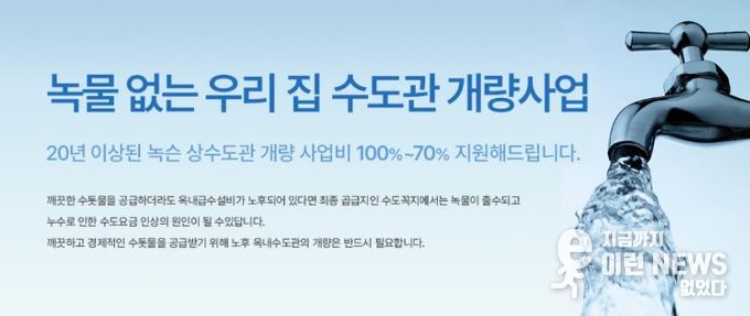 이런뉴스(e-runnews) 김삼성 기자 | 하남시는 시민들의 쾌적한 수돗물 이용 환경 조성을 위해 오는 12월 20일까지‘녹물 없는 우리 집 수도관 개량사업’을 추진한다고 밝혔다.