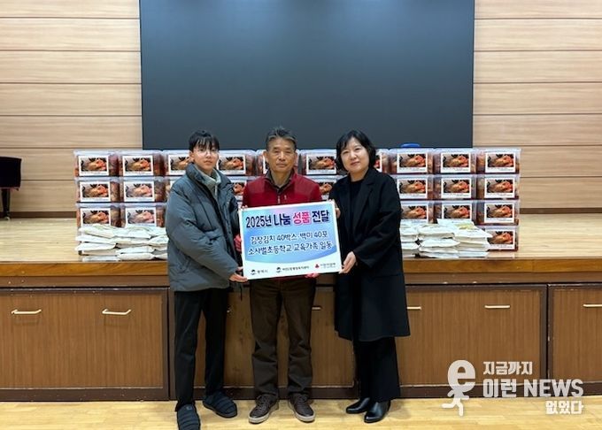 이런뉴스(e-runnews) 김삼성 기자 | 소사벌초등학교는 지난 4일, 지역 취약계층을 돕기 위한 ‘사랑의 김장 나눔’ 활동을 통하여 마련한 김치 40상자와 쌀 40포를 평택시 비전2동 행정복지센터에 기부했다.