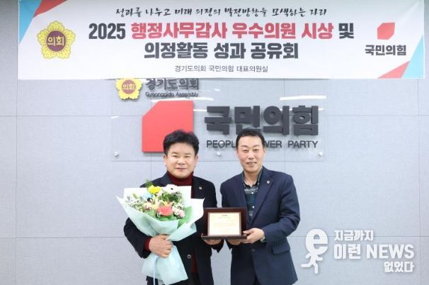 이런뉴스(e-runnews) 김삼성 기자 | 문병근 경기도의회 건설교통위원회 부위원장(국민의힘, 수원11)이 12일 경기도의회 국민의힘 회의실에서 열린 '2025 행정사무감사 우수의원 시상식 및 의정활동 성과 공유회'에서 ‘행정사무감사 우수의원’에 선정됐다. 이번 시상식은 행정사무감사를 통해 도민 중심의 정책 대안을 제시하고, 도정 전반의 운영을 꼼꼼히 살핀 의원들을 격려하기 위해 마련됐다.