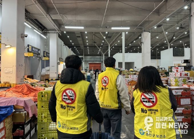 이런뉴스(e-runnews) 김삼성 기자 | 수원시 권선구보건소가 11월 17일부터 12월 12일까지 수원시농수산물도매시장 내 금연 구역에서 흡연 행위를 집중적으로 단속했다.