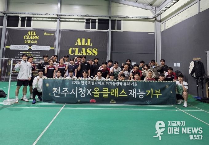 전주시청 배드민턴팀은 12일 오후 7시 30분, 올클래스 배드민턴 체육관에서 올클래스 클럽 동호인 50명을 대상으로 재능기부 프로그램을 진행했다.
