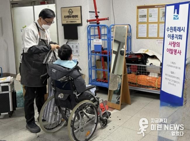 이런뉴스(e-runnews) 김삼성 기자 | 지난 16일, 수원시 영통구 매탄3동 주공6단지에서 수원시 이용지회가 저소득 어르신과 장애인을 위한 사랑의 이발 봉사를 진행하며 지역사회에 따뜻한 온기를 전했다.