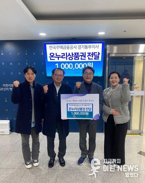 이런뉴스(e-runnews) 김삼성 기자 | 이천시는 이천시노인종합복지관이 12월 15일 한국주택금융공사 경기동부지사로부터 온누리상품권 100만 원을 전달받았다고 전했다.