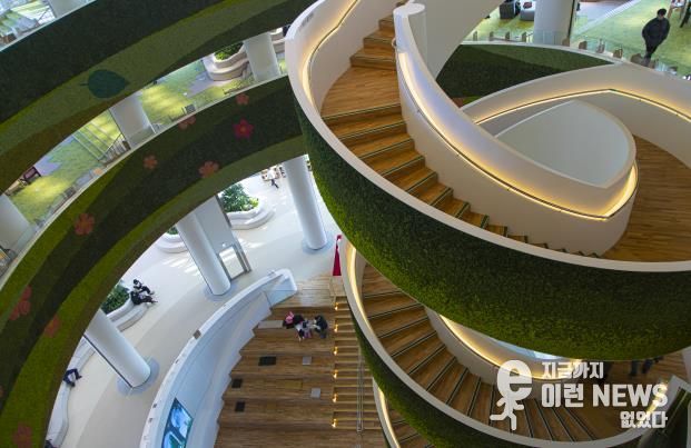 경기도서관은 2025년 10월에 개관한 신생 도서관이다. 지상 5층 건물은 나선형 구조와 창살 문양으로 설계되어 외관부터 남다르다. 문을 열고 들어서면 이곳이 단순히 책을 빌리는 장소가 아니라는 사실을 곧 알게 된다. 칸막이가 없는 동선 설계로 공간 전체가 하나의 거대한 서재 혹은 거실을 연상케 한다. 층과 층을 연결하는 길에는 ‘경기책길’이라는 이름을 붙였다. 벽면이 모두 통창이고 곳곳에 작은 정원을 꾸며놓아서 마치 숲에서 책을 읽는 느낌이 들기도 한다.