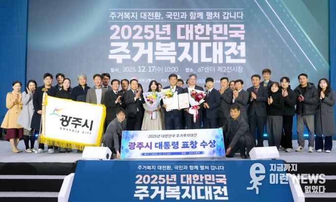 이런뉴스(e-runnews) 김삼성 기자 | 광주시는 17일 서울 aT센터에서 열린 ‘2025년 대한민국 주거복지대전’에서 전국 지방자치단체를 대상으로 실시한 주거복지 대상 평가 결과 최우수 기관으로 선정돼 대통령 표창을 수상했다.