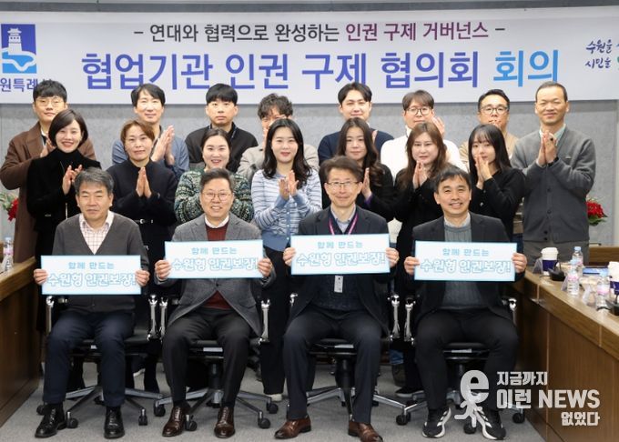 이런뉴스(e-runnews) 김삼성 기자 | 수원특례시가 17일 시청 영상회의실에서 13개 협업 기관과 ‘제2회 수원시 협업 기관 인권 구제 협의회’를 열고, 인권침해 구제 방안 등을 논의했다.
