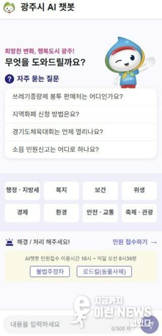 이런뉴스(e-runnews) 김삼성 기자 | 광주시는 생성형 인공지능(AI) 기술을 활용한 ‘광주시 AI 행정서비스 구축’ 사업을 완료하고 AI 민원 채팅 로봇과 콜봇을 22일부터 시범 운영한다고 19일 밝혔다.