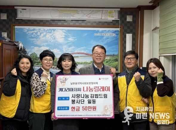 이런뉴스(e-runnews) 김삼성 기자 | 오산시 남촌동 행정복지센터는 지난 18일 ‘사랑나눔 김밥드림 봉사단’이 연말을 맞아 지역 내 어려운 이웃을 돕기 위해 성금 50만 원을 기탁했다고 밝혔다.