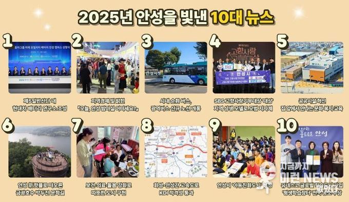 이런뉴스(e-runnews) 김삼성 기자 | 안성시는 올 한 해 추진한 주요 사업과 성과를 토대로 시민 대상 설문조사를 거쳐 2025년을 빛낸 10대 뉴스를 선정했다고 밝혔다.