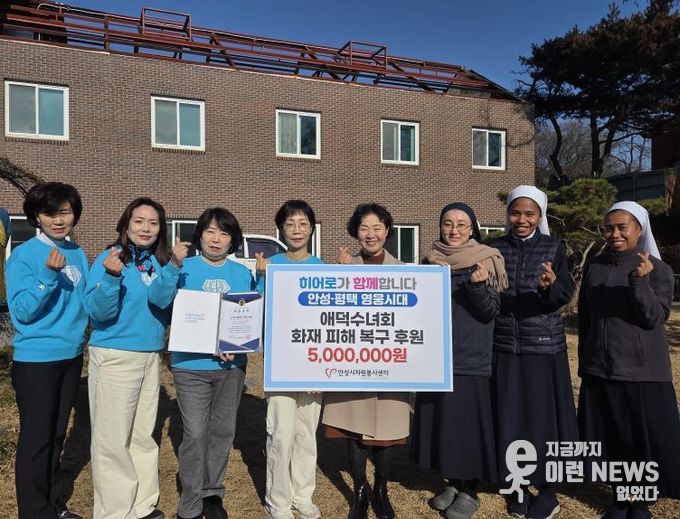 후원금 전달식은 화재 피해가 발생한 미리내성요셉애덕수녀회에서 진행됐으며, 안성·평택 영웅시대 회원들은 갑작스러운 화재로 어려움을 겪고 있는 이웃들의 일상 회복을 돕고자 십시일반 정성을 모았다.