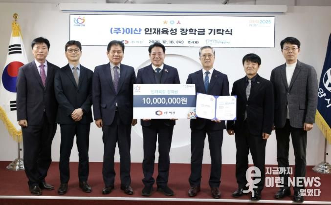 한광두 ㈜이산 사장은 “지역사회로부터 받은 사랑과 성원에 보답하고, 미래세대의 건강한 성장과 꿈을 응원하고자 장학금을 기탁하게 됐다”며, “이 장학금이 학생들에게 든든한 디딤돌이 되길 바란다”고 밝혔다.