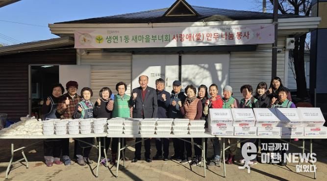이런뉴스(e-runnews) 김삼성 기자 | 생연1동 새마을부녀회는 지난 18일 연말연시를 맞아 지역사회에 따뜻한 정을 나누고 이웃사랑을 실천하기 위해 관내 취약계층 31가구를 대상으로 ‘사랑애(愛) 만두 나눔 봉사’를 진행했다.
