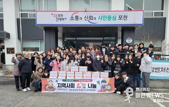 이런뉴스(e-runnews) 김삼성 기자 | 포천시 관인면행정복지센터는 지난 17일 관인중학교(교장 황만식) 학생들이 김장김치 10kg 30박스를 기탁했다고 밝혔다.