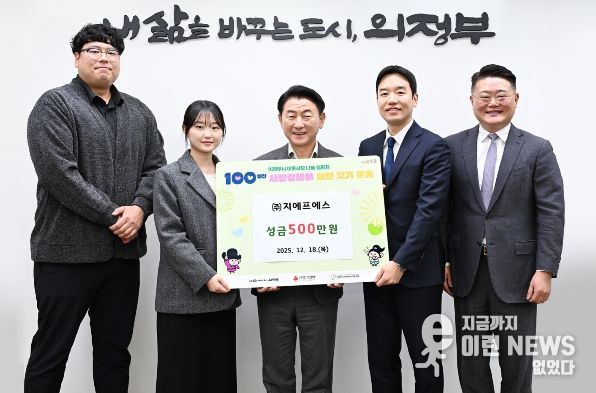 이런뉴스(e-runnews) 김삼성 기자 | 의정부시는 12월 18일 관내 기업 ㈜지에프에스가 지역사회 나눔 실천의 일환으로 성금 500만 원을 기탁했다고 밝혔다.